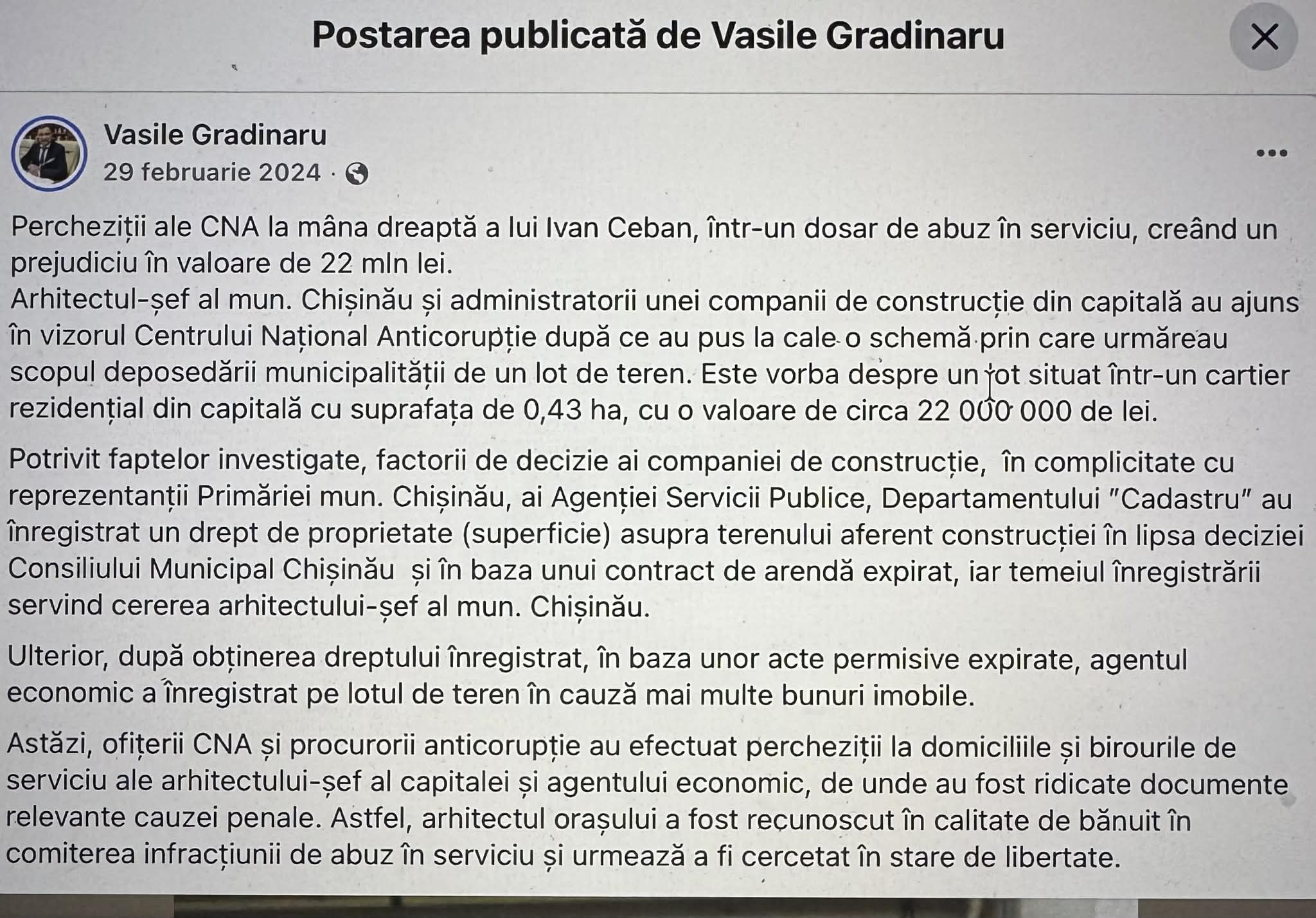 Dar voi, cei implicați în această afacere murdară – urgent dați foc la calculatoarele și telefoanele voastre, că ofițerii repede vor descoperi cu cine într-adevăr s-au întreținut hoții de terenuri. Și tare miroase a gavniuci de-ai voștri printre acele personaje.